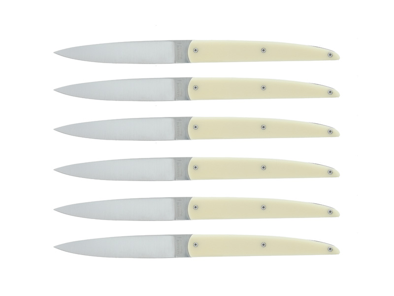 Coffret 6 couteaux de table G. David Arbalète - manche acrylique crème 23 cm