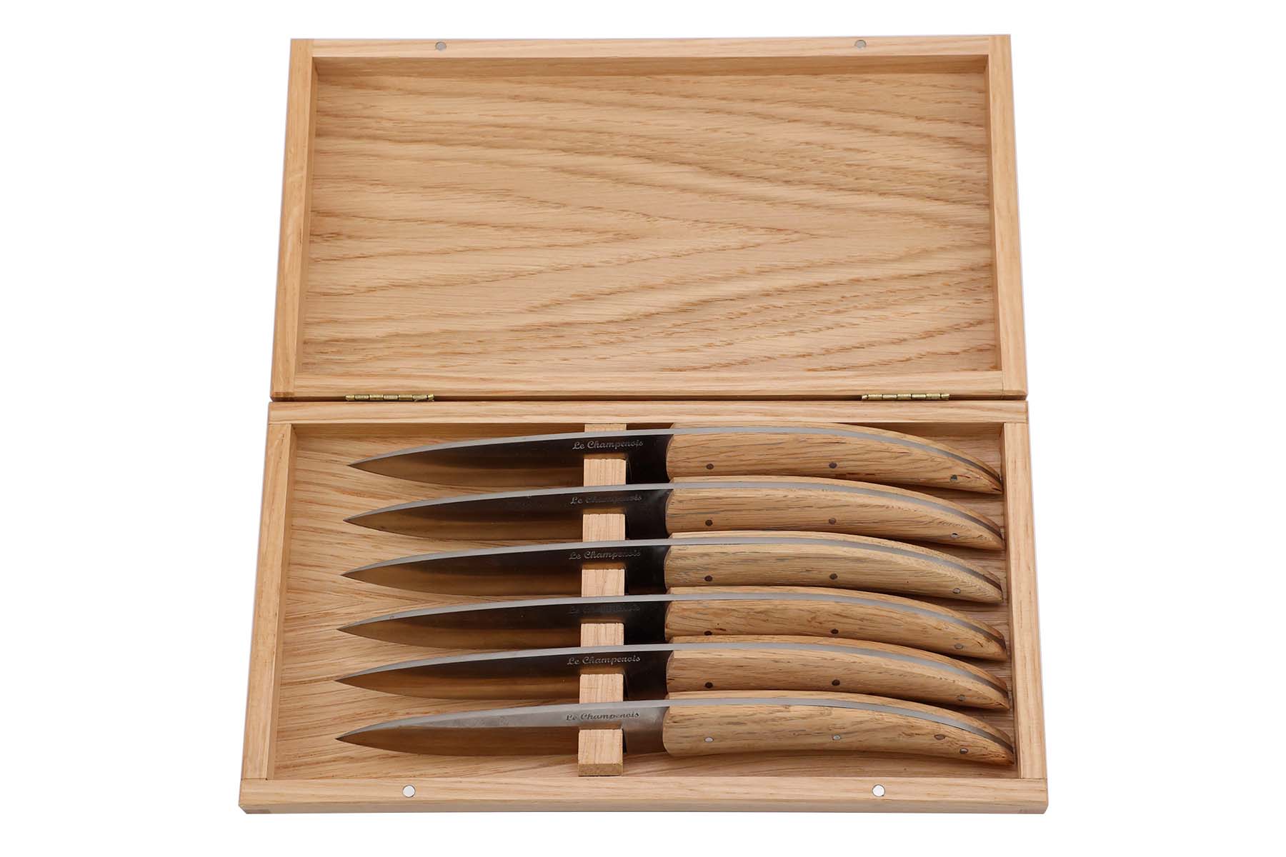 Coffret de 6 couteaux de table "Le Champenois" - Chêne brulé