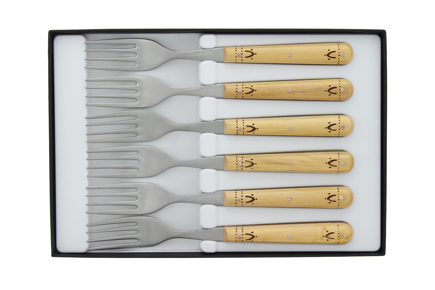 Coffret de 6 fourchettes de table Nontron - manche rond en buis pyrogravé