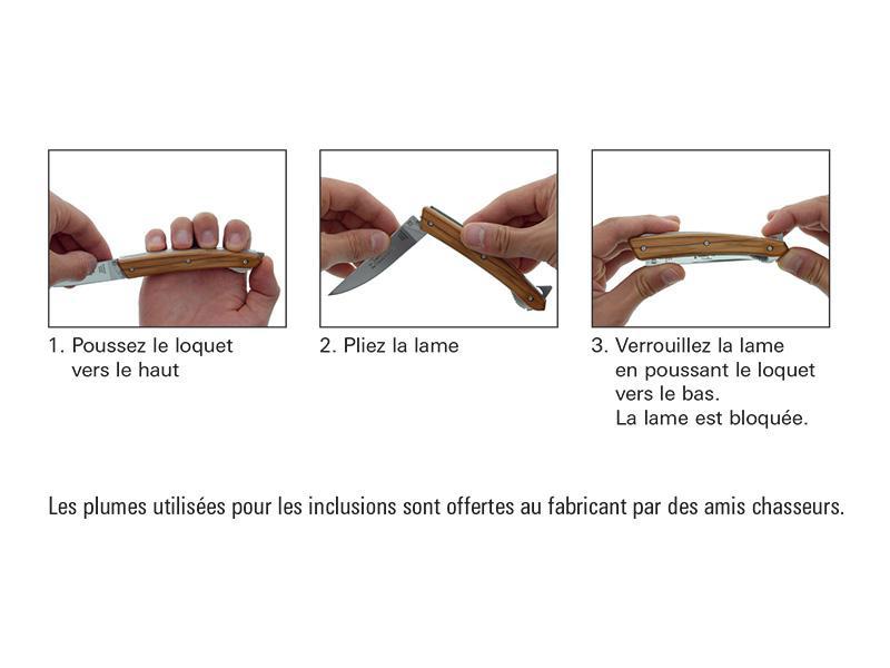 • Couteau Le Thiers Verrou C. Dozorme - manche 12 cm inclusion plumes de Geai
