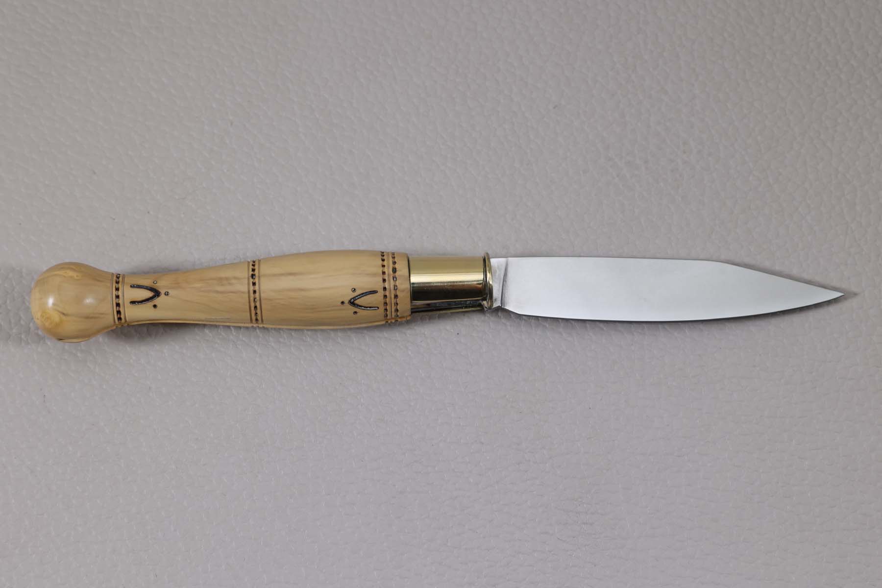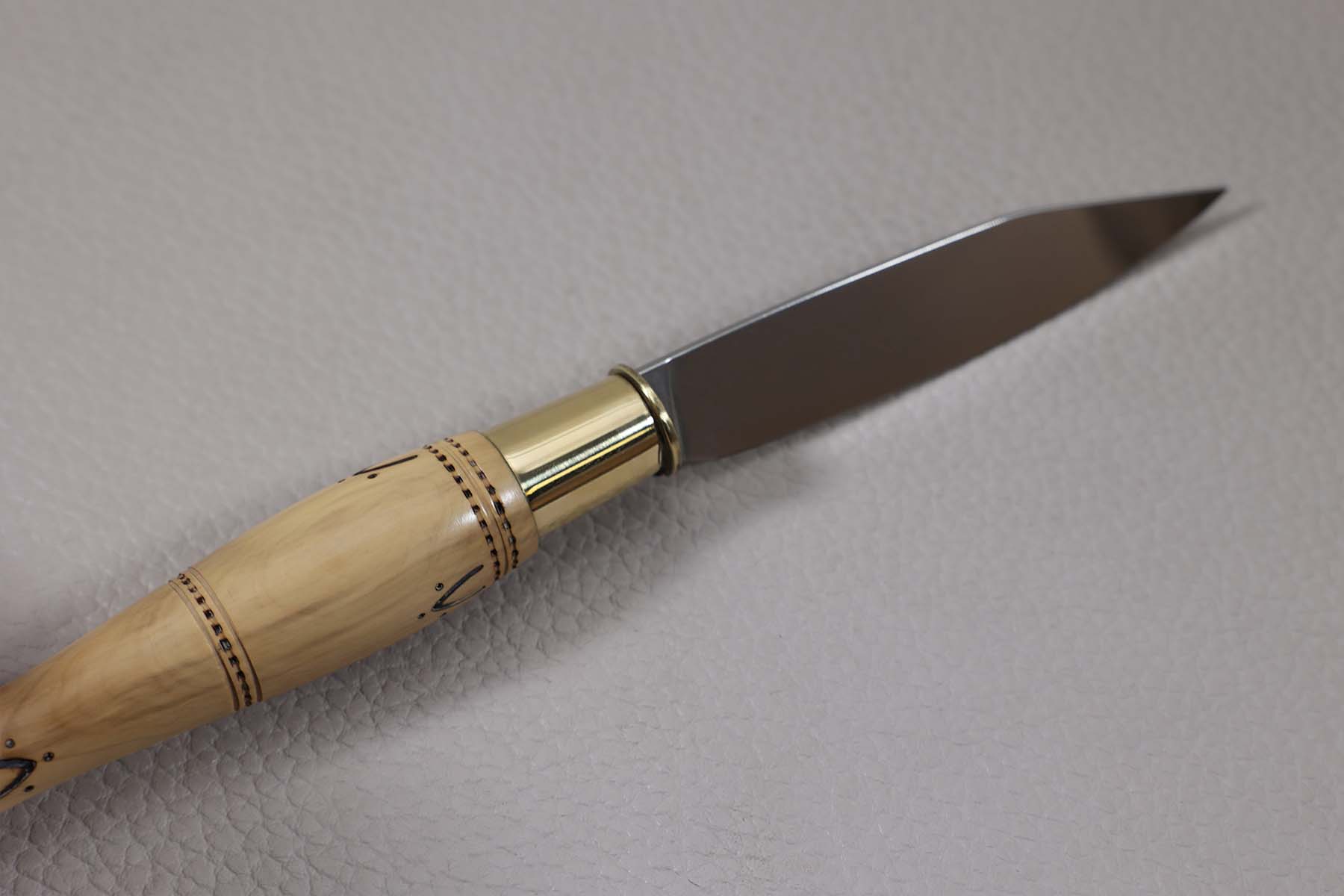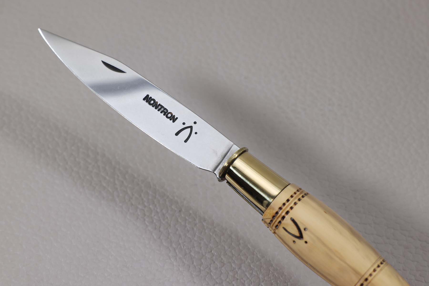 Ce couteau français est muni d'une lame en acier T14 de 9 cm.