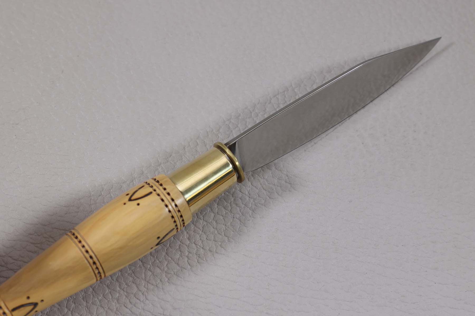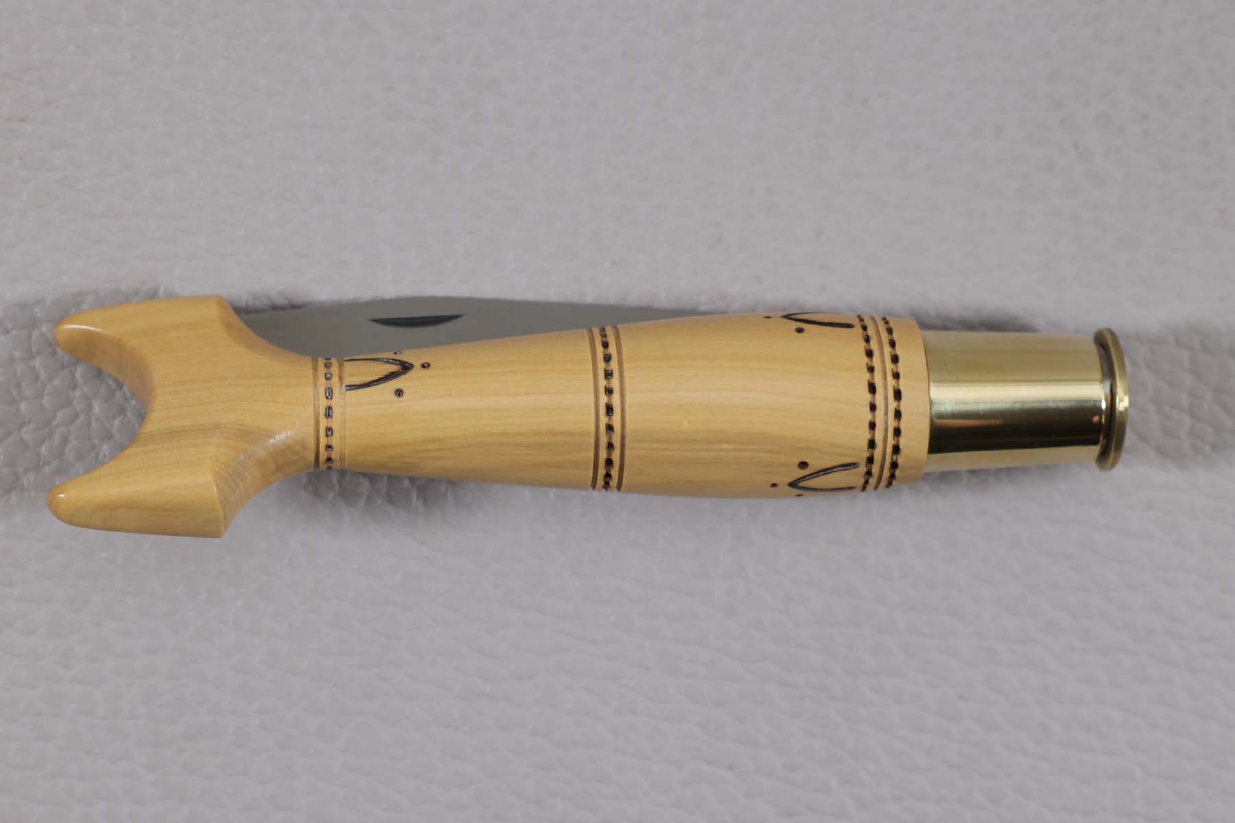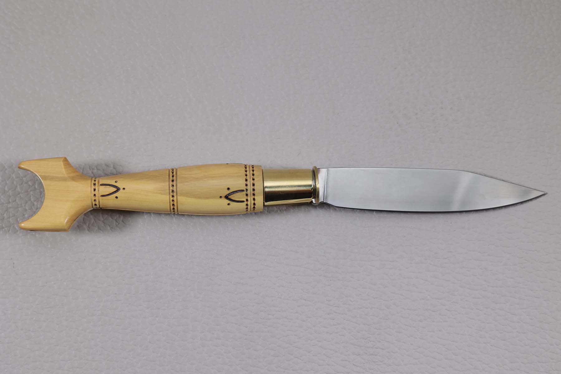 Le manche queue de carpe est en buis et muni d'une virole bloquante.