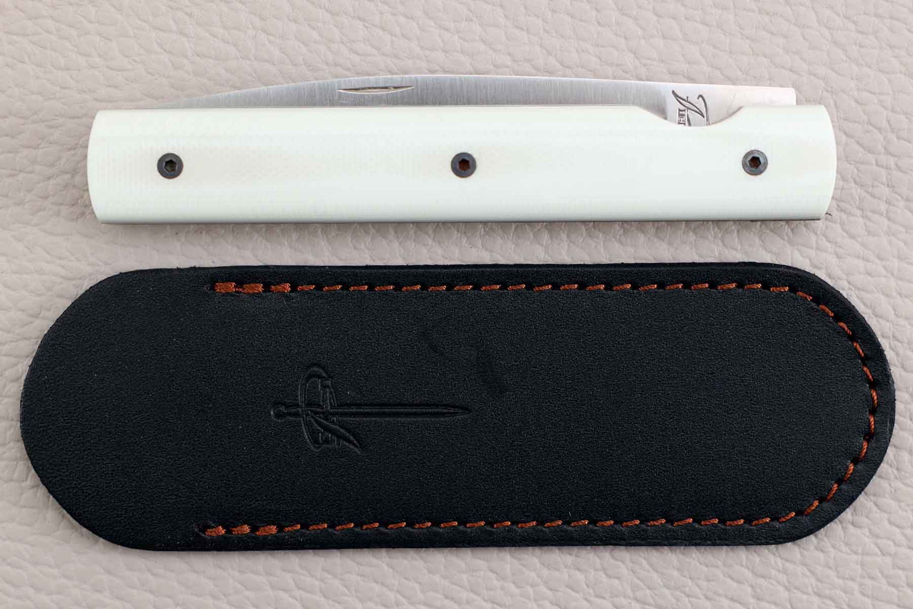 Chaque couteau Le Français est livré avec un étui cuir de vachette pleine fleur.