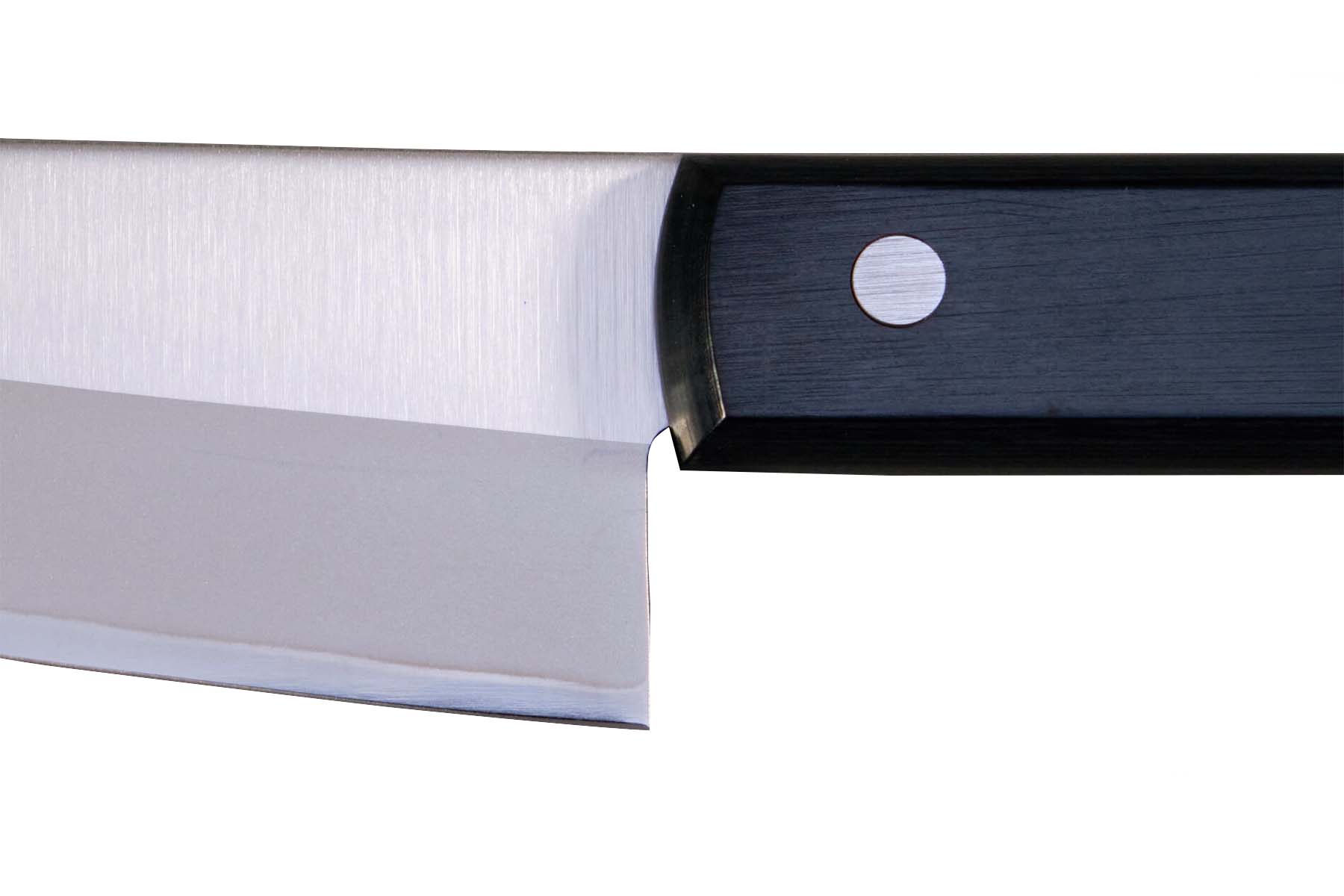 La gamme DP plein manche de Tojiro propose 4 couteaux. C'est la gamme la moins chère existant sur le marché proposant des lames en VG10. La qualité de coupe est donc la même que sur les DP série et DP Damascus. Le montage se fait sur 3 rivets sans mitre, d'où un prix moindre pour une qualité de coupe équivalente.