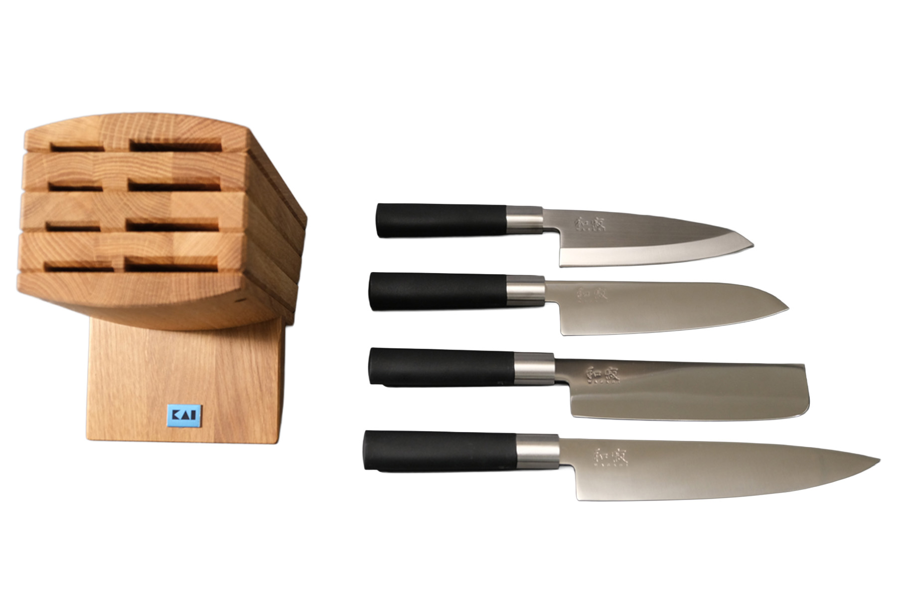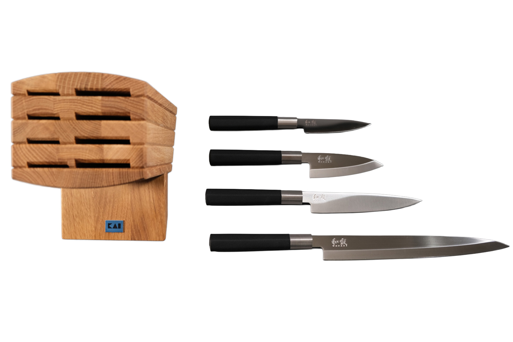 • Bloc complet de 8 couteaux japonais Kai Wasabi Black