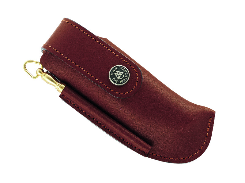 Étui en cuir marron + fusil Max Capdebarthes "Chasse" pour couteaux larges 12 cm