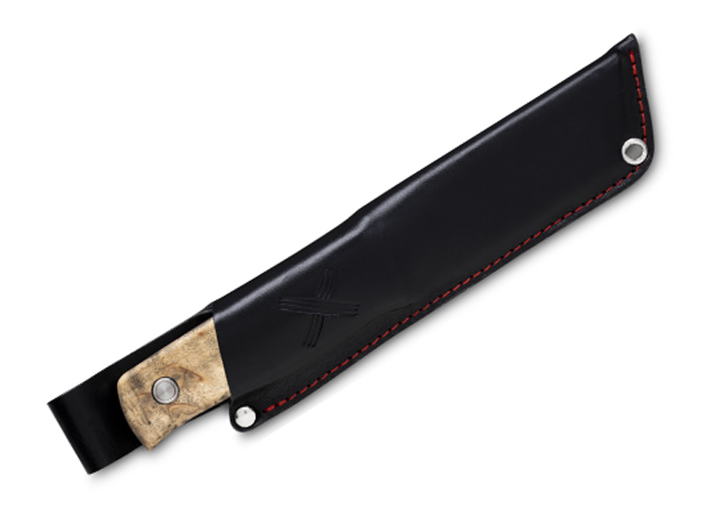 Poignard Marttiini Tundra GR type bushcraft lame 11 cm - manche bouleau teinté gris et intercalaires rouges